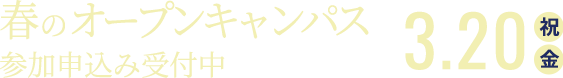 2026年度の「春のオープンキャンパス」を開催します。 皆様のご参加を心よりお待ちしております。 詳細および参加お申込みについては、入試情報サイトをご確認ください。