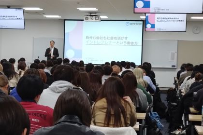 2025年10月29日<政治経済学部>三起商行(ミキハウスグループ)によるキャリア探究の講義を実施しました!