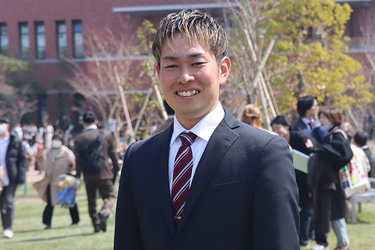 新しい大学にも関わらず、就職実績が良く、手厚いサポートを受けることができるのではないかと感じ、大和大学への進学を決めました。実際、就職活動中は何度もキャリアセンターに足を運び、希望の進路を実現するためサポートしていただきました。エントリーシートの添削やキャリアセンターの先生方の的確なアドバイスが内定につながったと感じています。ボランティア活動など、大学生のうちに自分がやりたいことに挑戦し、充実した学生生活を送ってください。
