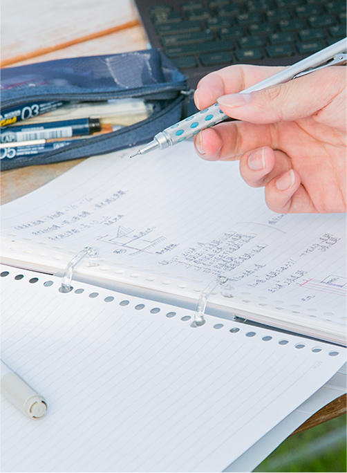 大学に進学したことで、「建築士になりたい」という目標が明確になり、夢に近づくために建築に関する知識を深めることを決意。工業高校を卒業したことで、二級建築士の試験が受けられる学歴要件を満たしていたことから、大学1年生のときに資格取得に挑戦することにしました。二級建築士の資格取得に挑む受験生たちは、専門学校や大学を卒業していたり、建築の実務経験があったりする方ばかり。スタートの時点で他の方々に差をつけられているぶん、人の倍以上、学科試験や設計製図試験の勉強に取り組むことにしました。