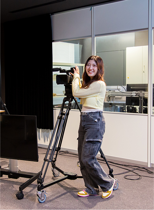 大和大学には、専門学校顔負けの本格的なスタジオや機材が揃っています。メディア業界での実務経験がある教授が多く、手厚いサポートで活動を支えてもらえるのもポイント。企画が思いつかなくて悩んでいたときも、たくさん相談に乗ってくれました。メディアについて、ここまで本格的に学べる4年制の大学はなかなかないと思います。