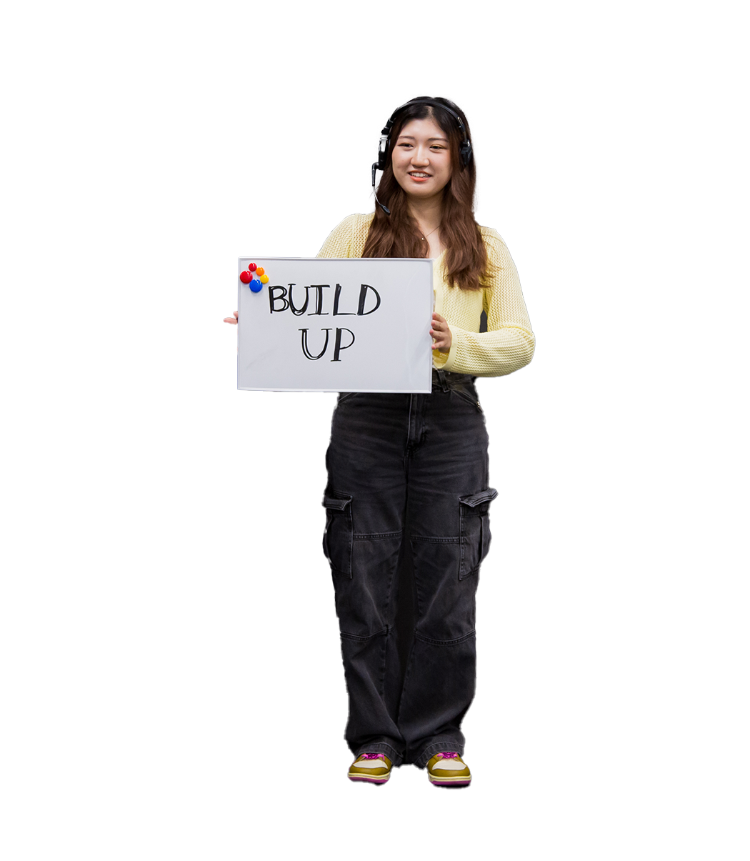 中学、高校の6年間はソフトテニスに打ち込む。SNSやテレビを見ることが好きで、詳しく学びたいと思っていた。なかなか触れる機会がないメディア業界の現場を知りたいと考え、大和大学のメディア社会学コースを志望。入学後、できたばかりの映像制作サークルに参加し、現在は部長としてサークルの運営とメディア制作にあたる。