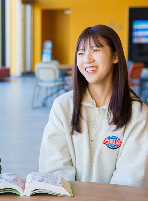 大和大学では、夢を叶えるために必要な知識やスキルを学べるだけでなく、やりたいことに挑戦できる環境があります。私自身、大学生活を通して積極性と広い視野を身につけました。卒業後は小学校教員として、児童一人ひとりに寄り添える存在を目指したいです。
