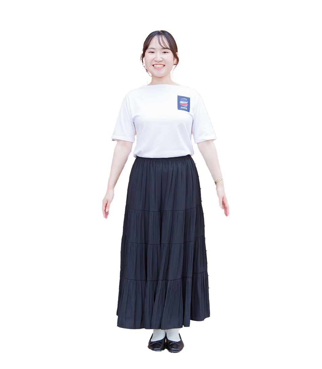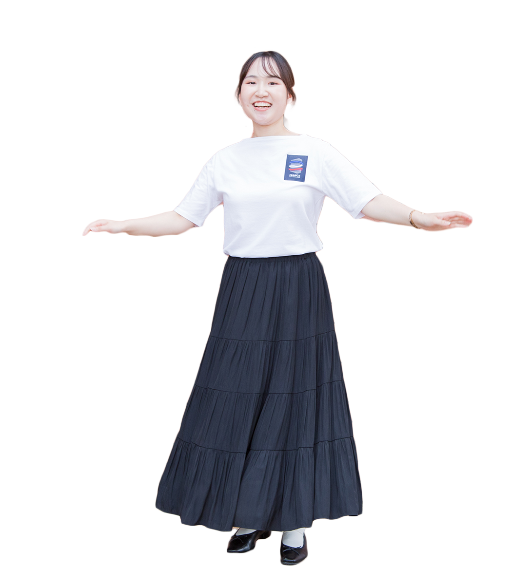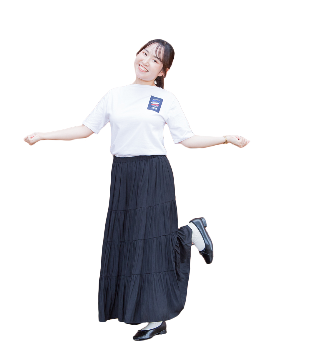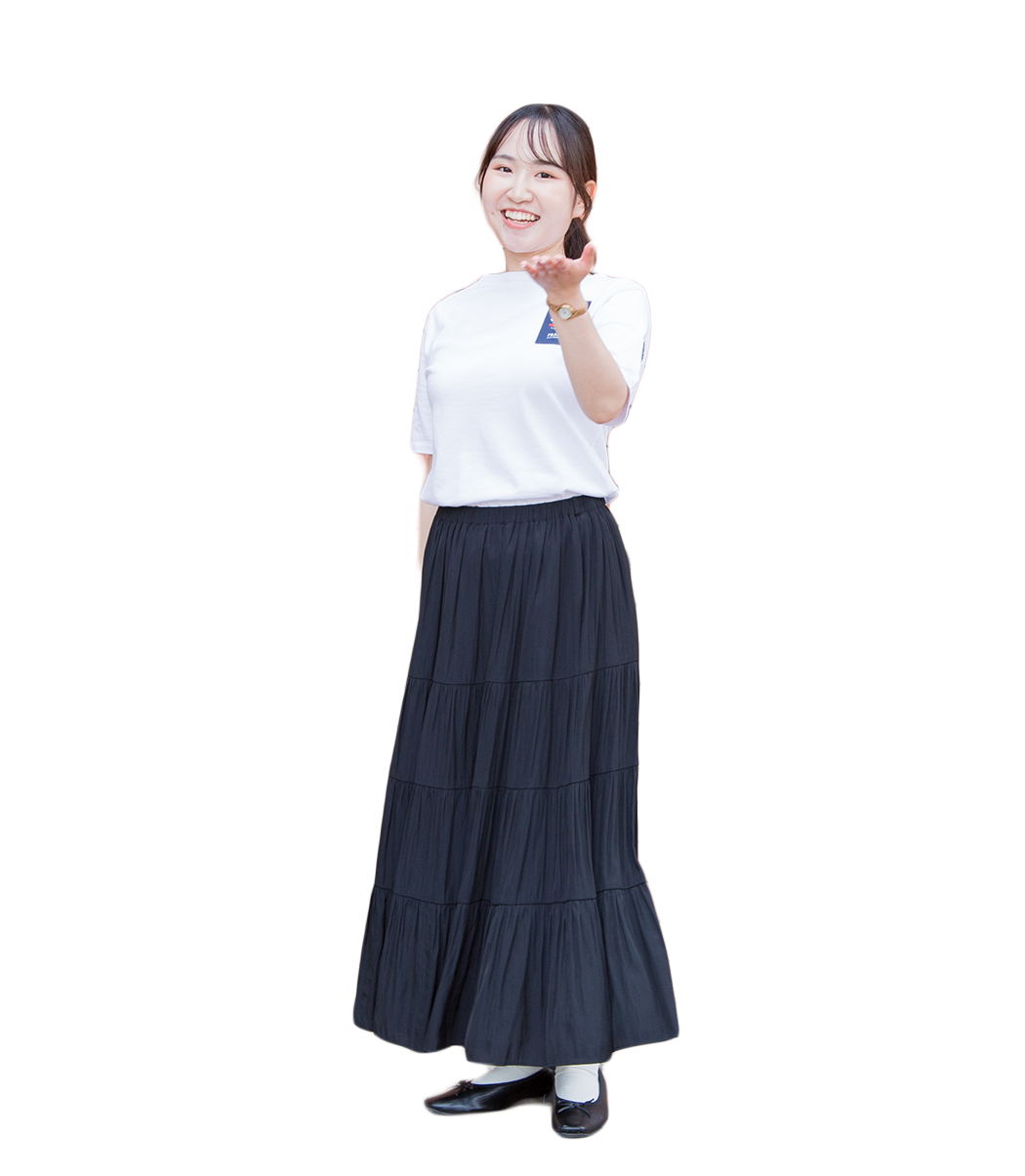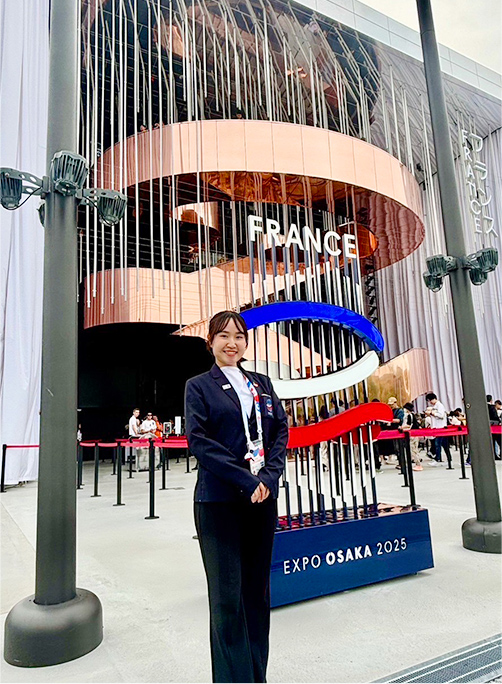 中学・高校とミュージカル部に所属し、高校3年時は6学年40名を率いる部長を務める。英語学習にも打ち込み、英語に関わる仕事をしたいと考えていた。「社会学部の二期生として積極的に活動し、ここでしか経験できない学生生活を送りたい」と大和大学に進学。現在、「大阪・関西万博2025」のフランスパビリオンでアルバイト中。