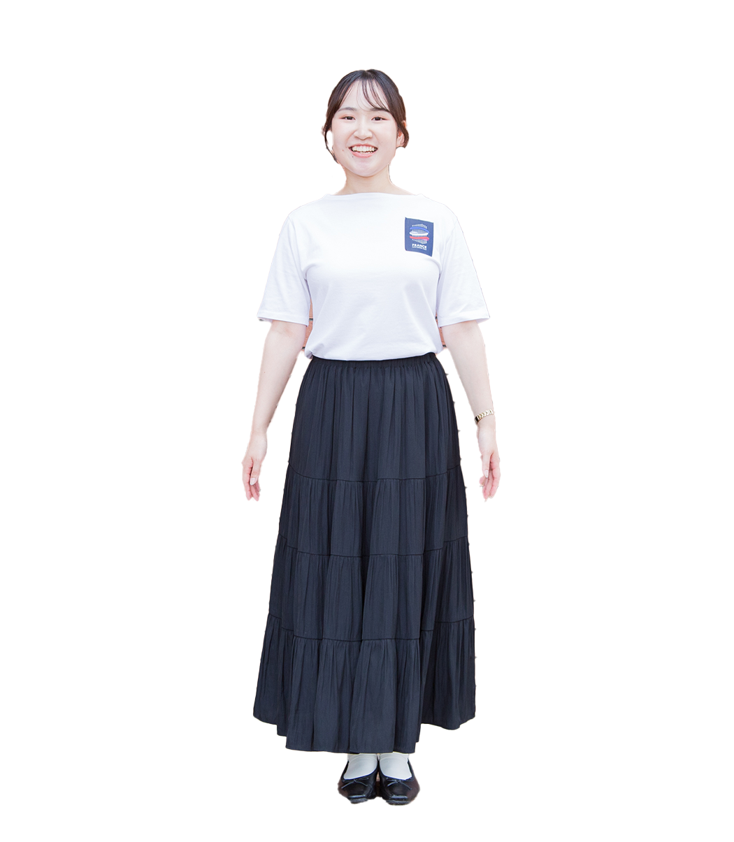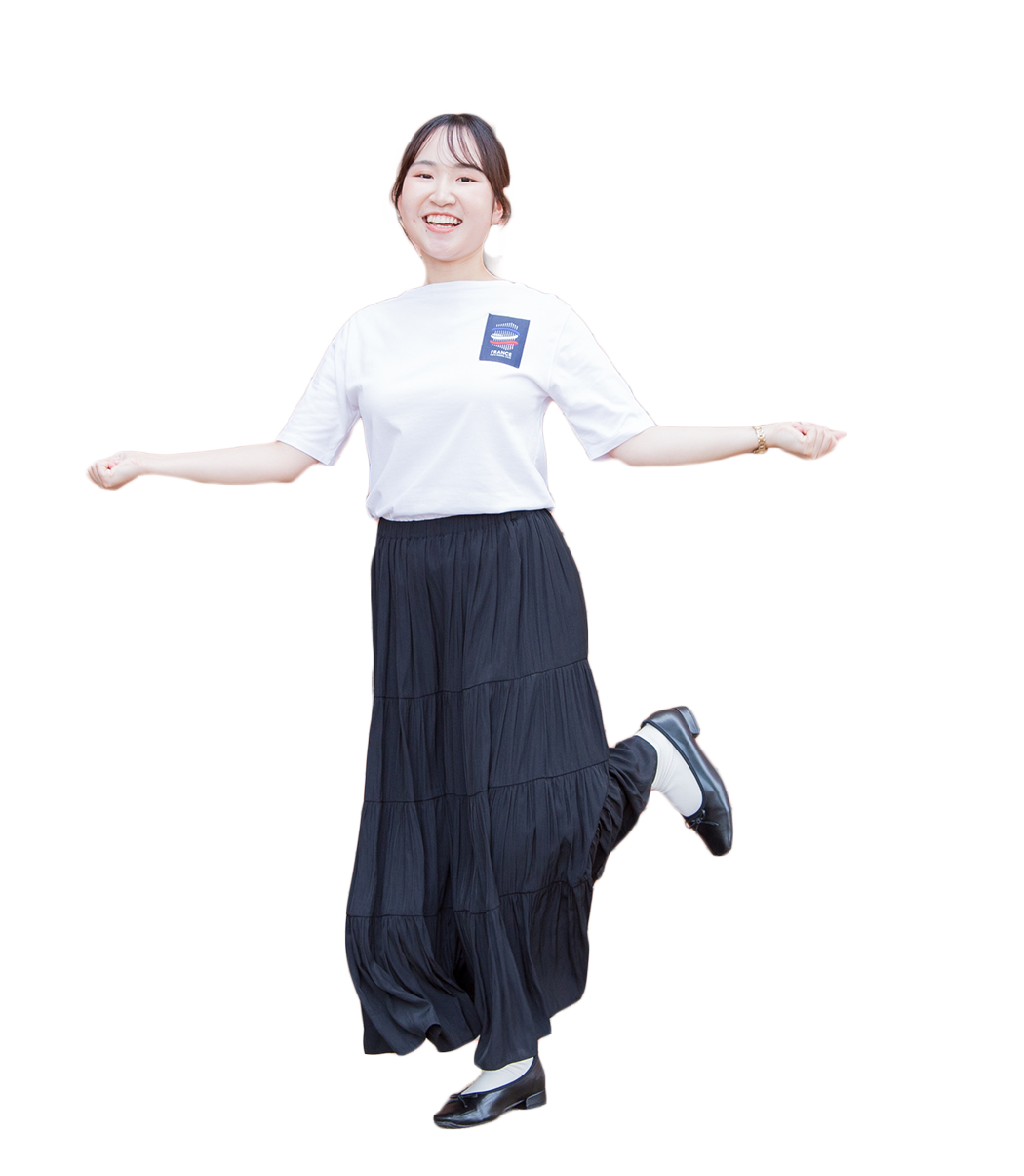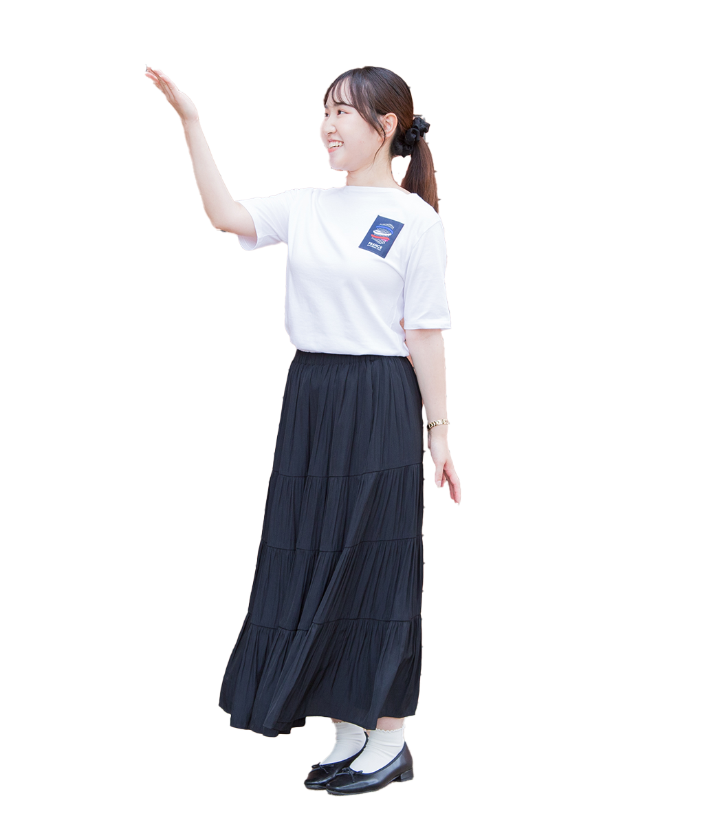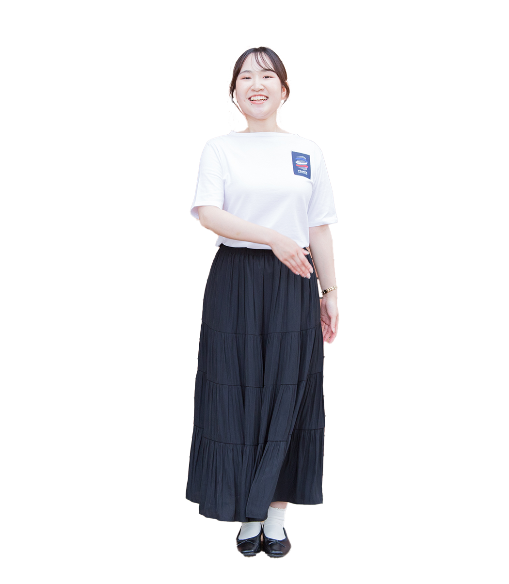 中学・高校とミュージカル部に所属し、高校3年時は6学年40名を率いる部長を務める。英語学習にも打ち込み、英語に関わる仕事をしたいと考えていた。「社会学部の二期生として積極的に活動し、ここでしか経験できない学生生活を送りたい」と大和大学に進学。現在、「大阪・関西万博2025」のフランスパビリオンでアルバイト中。