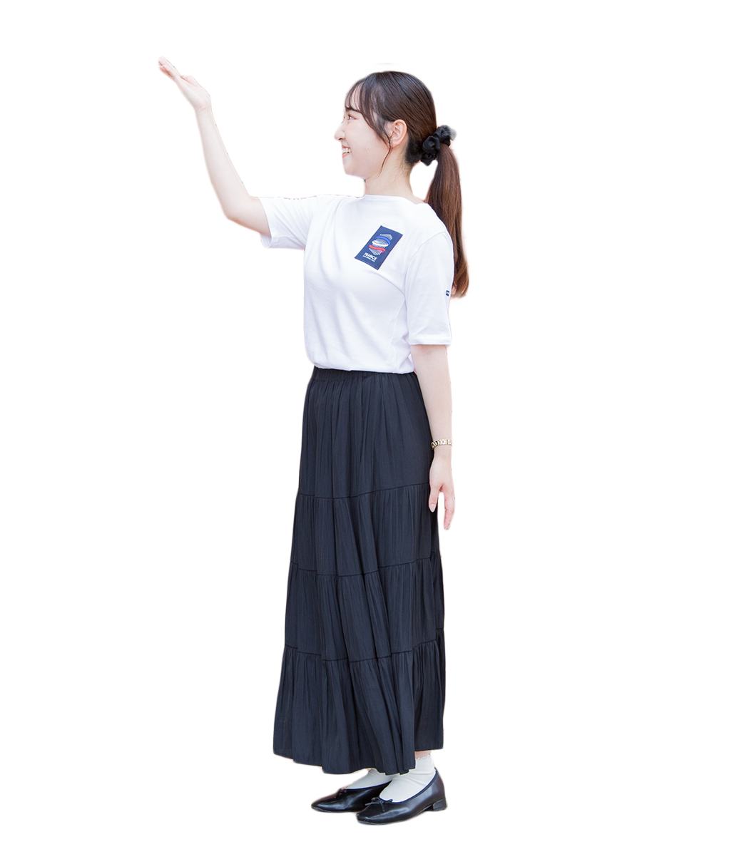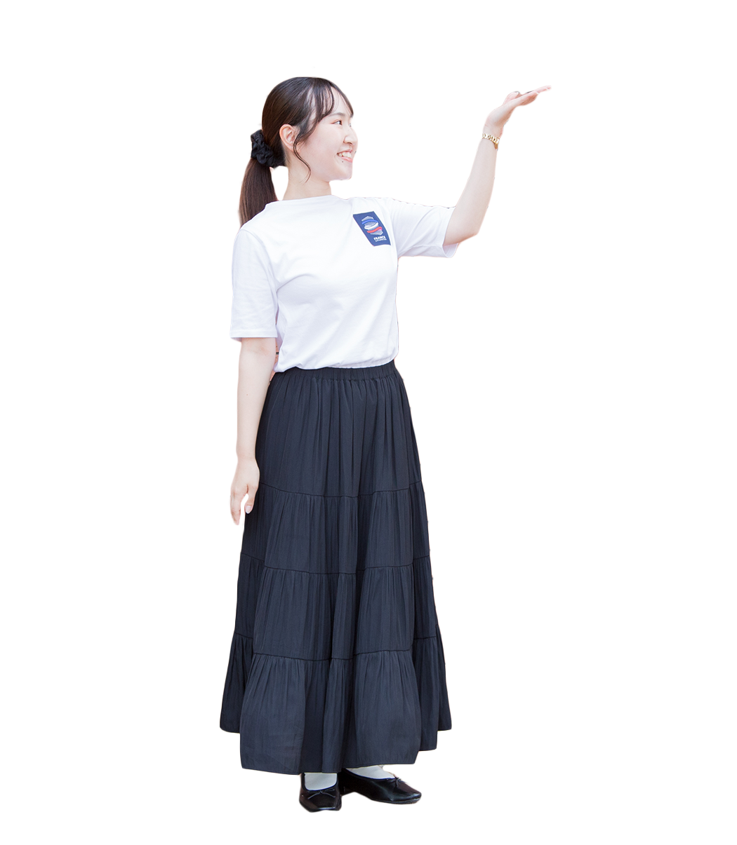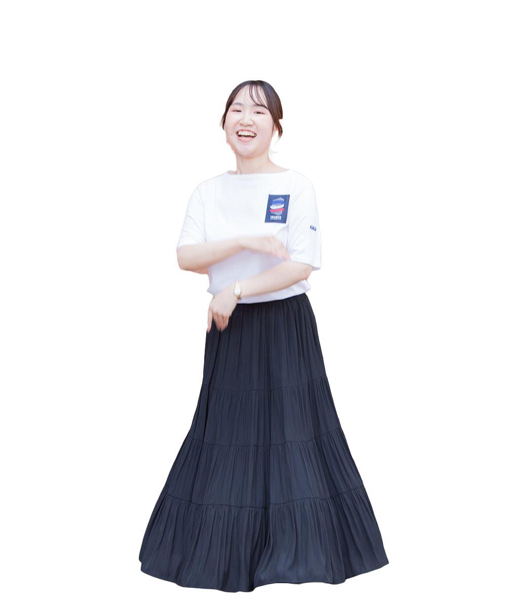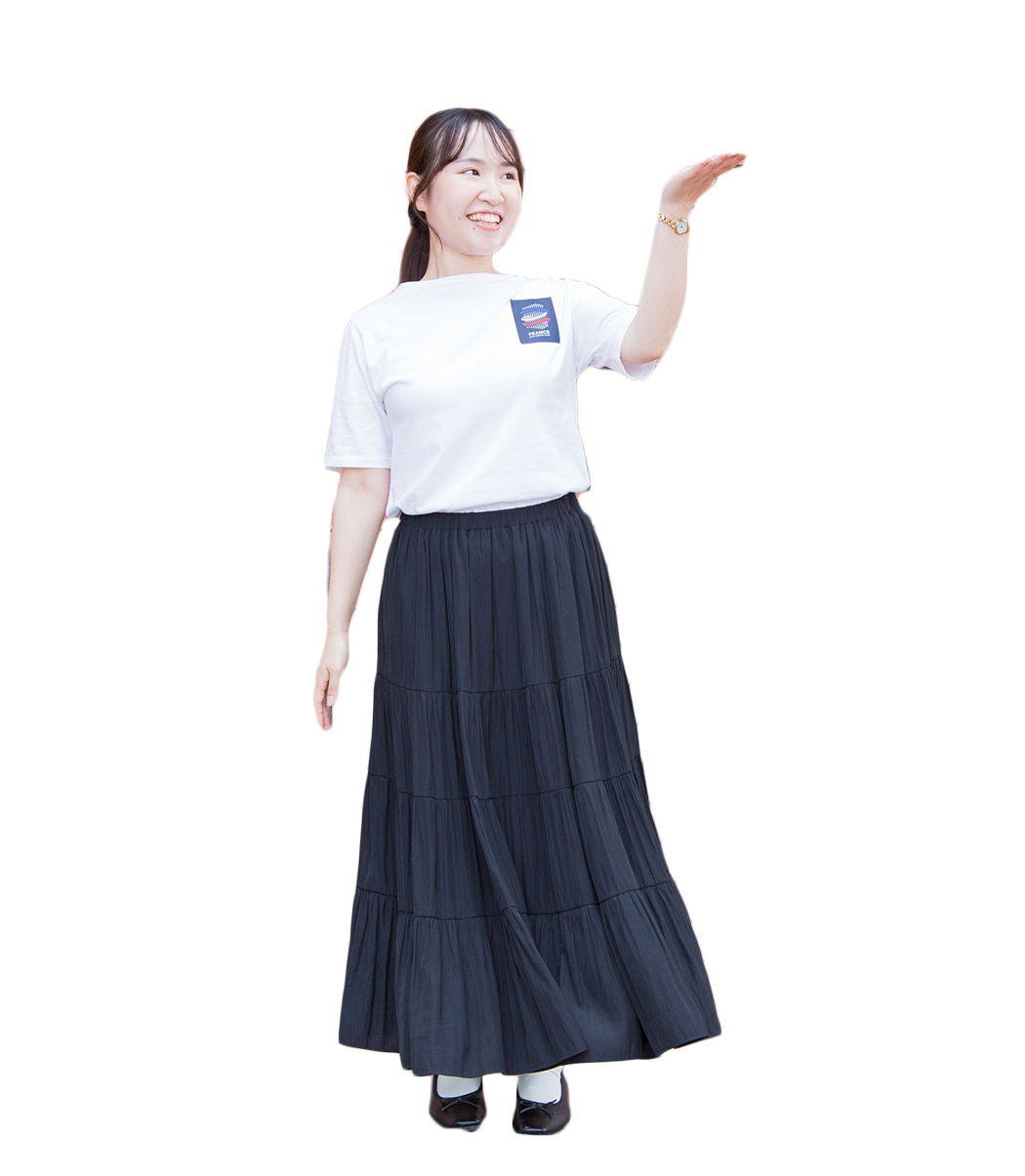 中学・高校とミュージカル部に所属し、高校3年時は6学年40名を率いる部長を務める。英語学習にも打ち込み、英語に関わる仕事をしたいと考えていた。「社会学部の二期生として積極的に活動し、ここでしか経験できない学生生活を送りたい」と大和大学に進学。現在、「大阪・関西万博2025」のフランスパビリオンでアルバイト中。