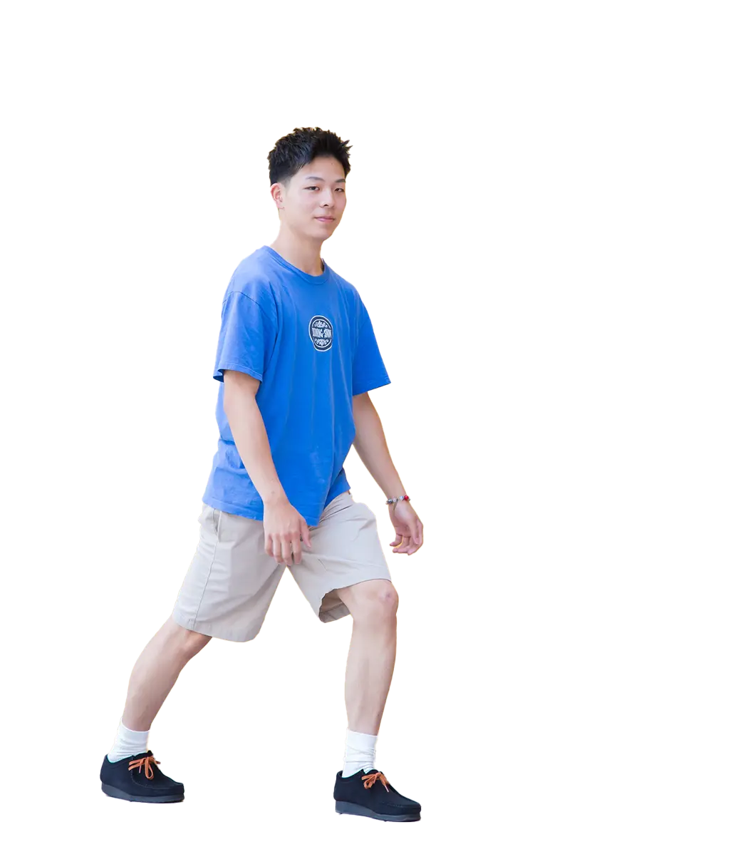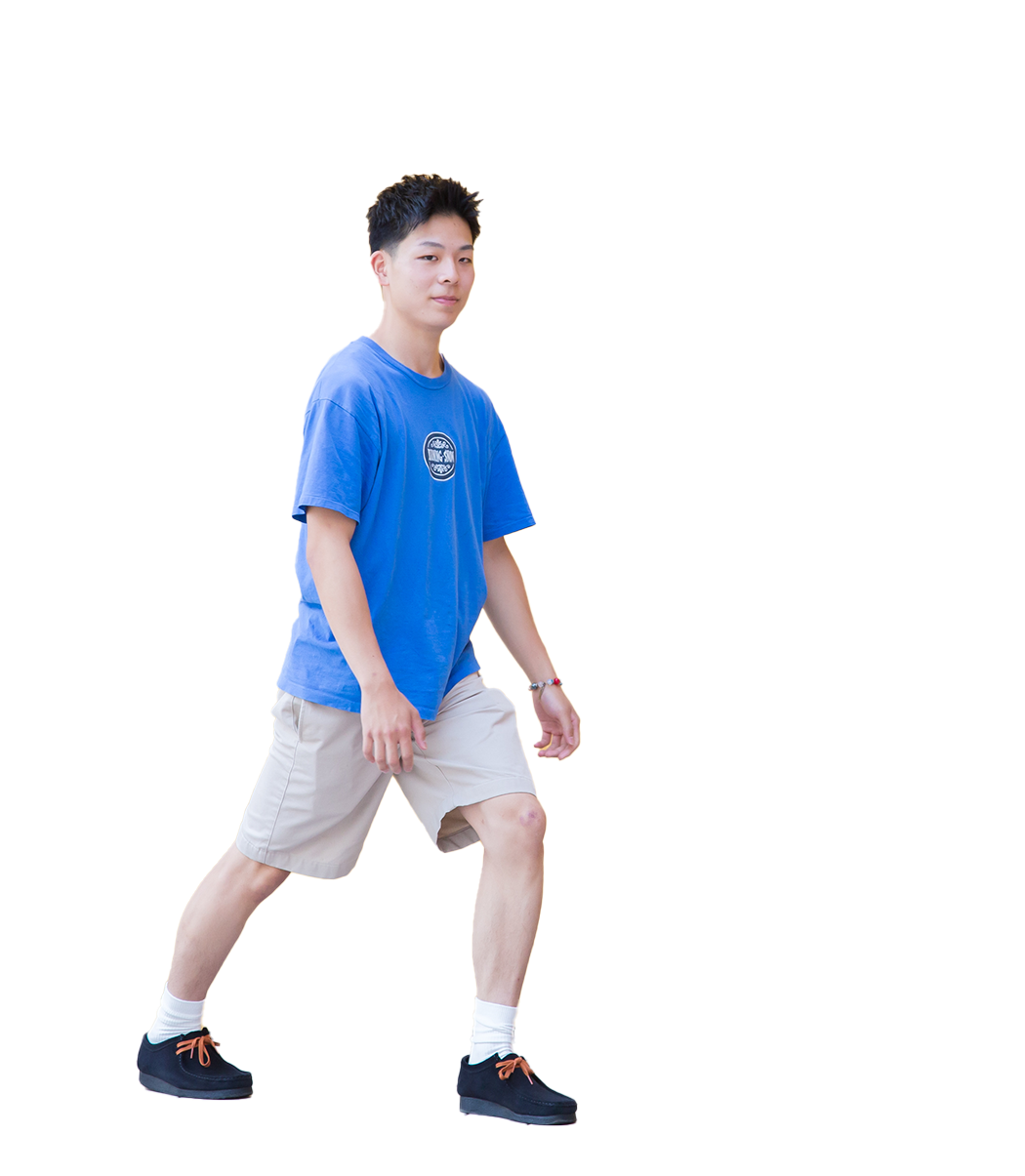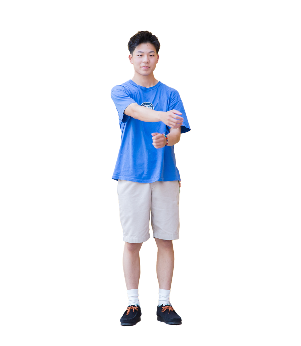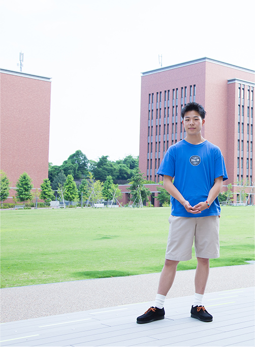 高校時代は、サッカー部での活動と受験勉強に注力。グローバルに活躍できる、スポーツトレーナーを夢見ていた。大和大学に選んだ理由は、専門学校や医療系の学校ではなく、総合大学で理学療法を学びたかったから。同じ学部生に加えて、いろいろな人と関われると考え進学を決めた。大学の施設がキレイなことも決め手に。