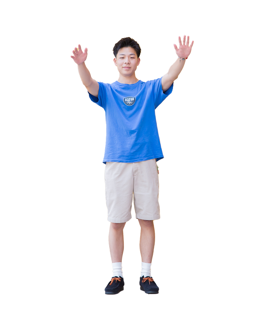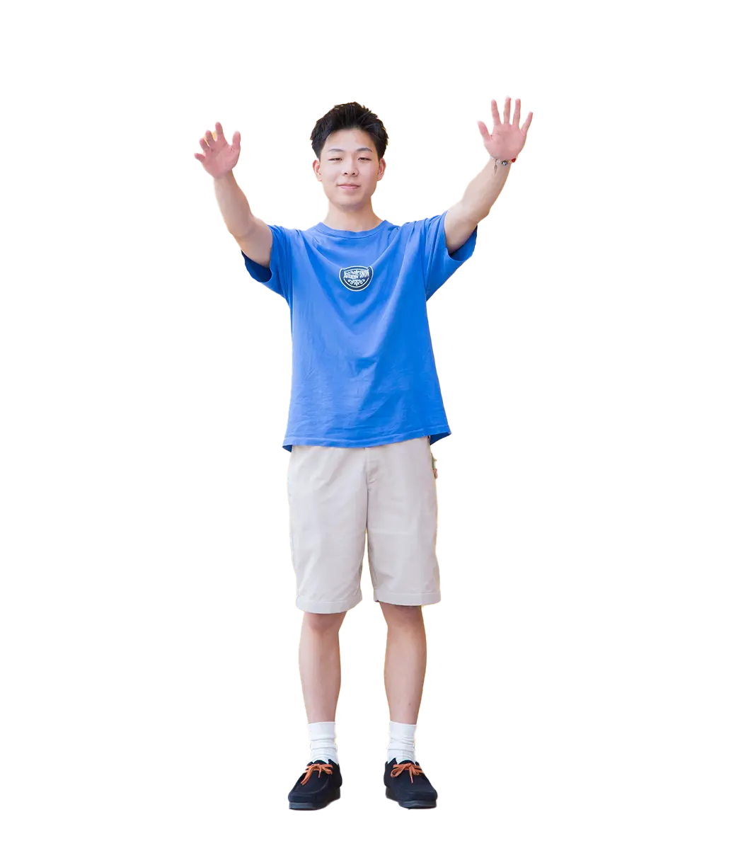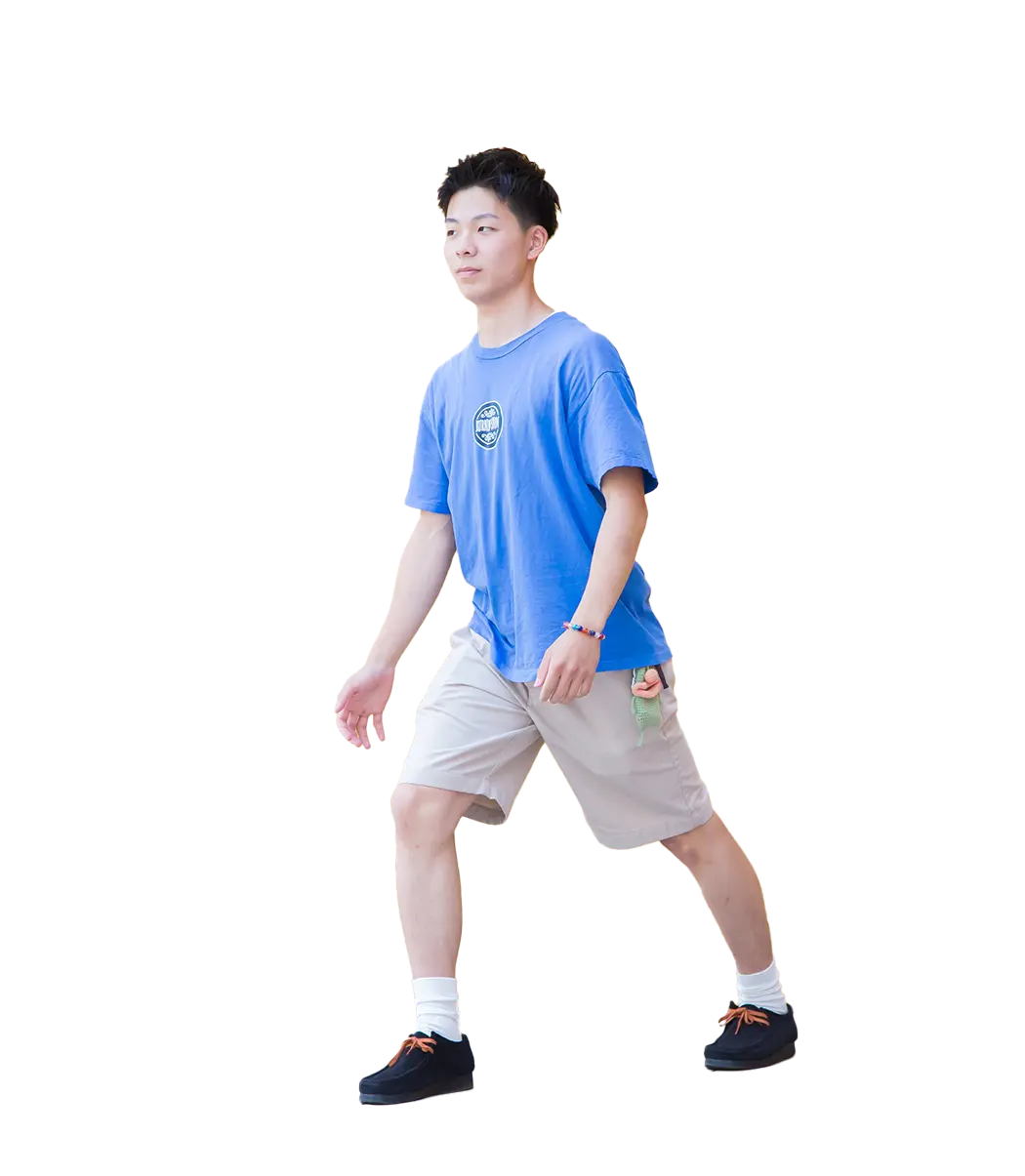 高校時代は、サッカー部での活動と受験勉強に注力。グローバルに活躍できる、スポーツトレーナーを夢見ていた。大和大学に選んだ理由は、専門学校や医療系の学校ではなく、総合大学で理学療法を学びたかったから。同じ学部生に加えて、いろいろな人と関われると考え進学を決めた。大学の施設がキレイなことも決め手に。