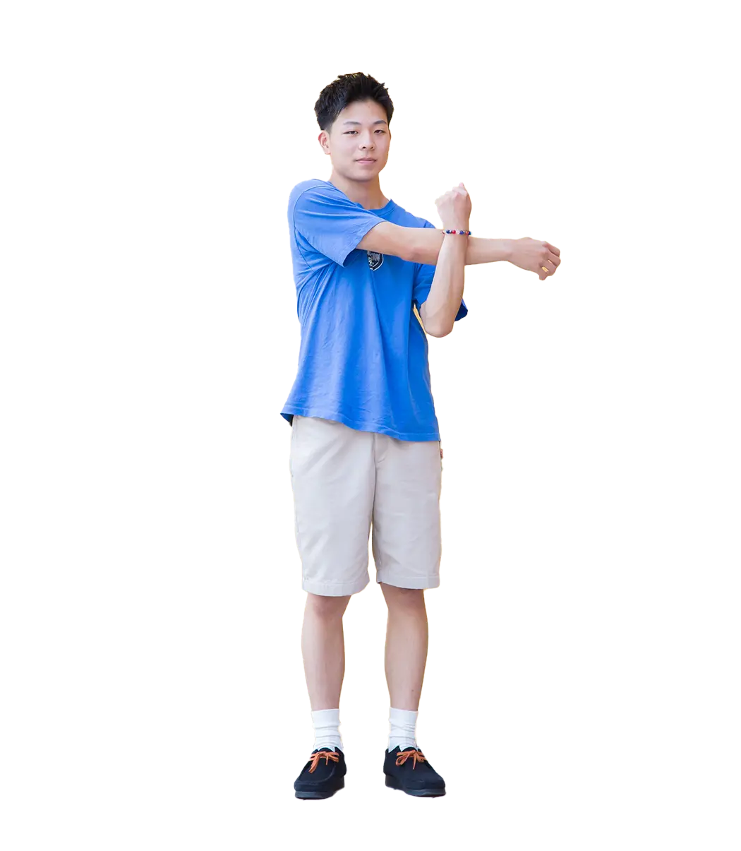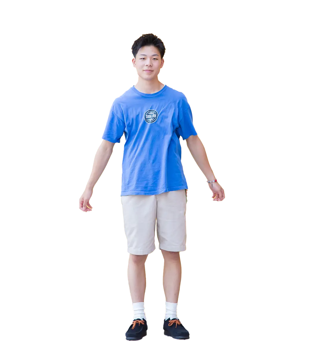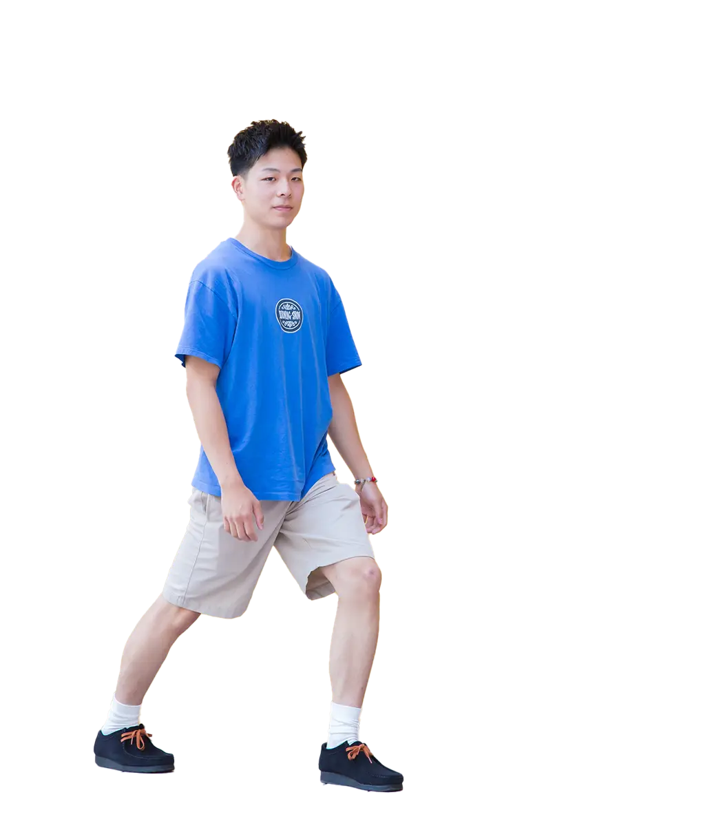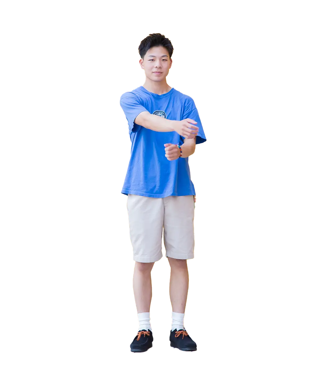 高校時代は、サッカー部での活動と受験勉強に注力。グローバルに活躍できる、スポーツトレーナーを夢見ていた。大和大学に選んだ理由は、専門学校や医療系の学校ではなく、総合大学で理学療法を学びたかったから。同じ学部生に加えて、いろいろな人と関われると考え進学を決めた。大学の施設がキレイなことも決め手に。