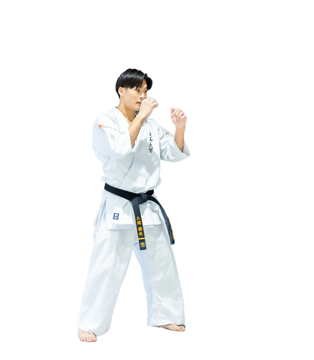 フルコンタクト空手(以下フルコン)とは、突きや蹴りなどを相手の身体に当てて闘う空手のこと。極真空手や正道会館などの団体で行われている空手が、これにあたります。現在、日本のフルコン界は、どの団体も少年部が中心。中学、高校、大学と進学するにつれて、競技人口がどんどん減っていく傾向があります。特に大学生は、時間的にも体力的にも一番稽古に打ち込みやすい年代であるにもかかわらず、フルコンを続ける人が極端に少ないのが現状です。