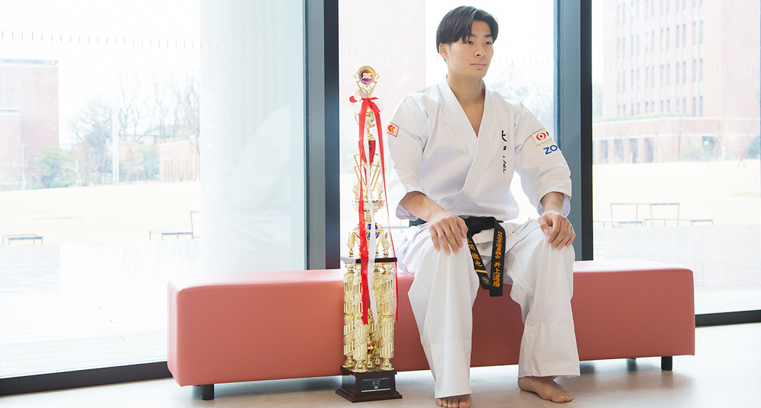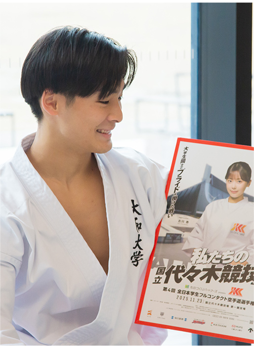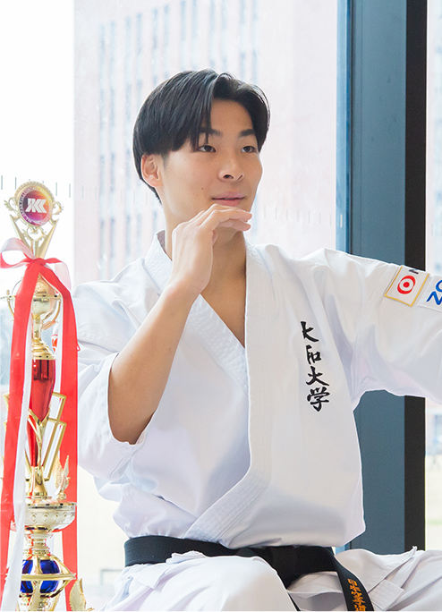 高校時代はフルコンタクト空手と野球に打ち込む。特に、兄の影響で幼い頃から習っていたフルコンタクト空手では、高校3年生のときに第1回大会が開催された、大学生の全国大会「インカレ」での優勝を目標に、練習に励む。教員との距離が近く、主体的に挑戦する学生を支援してくれる点に魅力を感じ、大和大学に進学。
