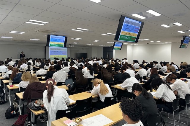 TOPPAN株式会社の寺師太郎氏を特別講師としてお迎えし、「AI時代の文化財と真正性」というテーマで、社会学部1年生189人が講義を受講しました。
