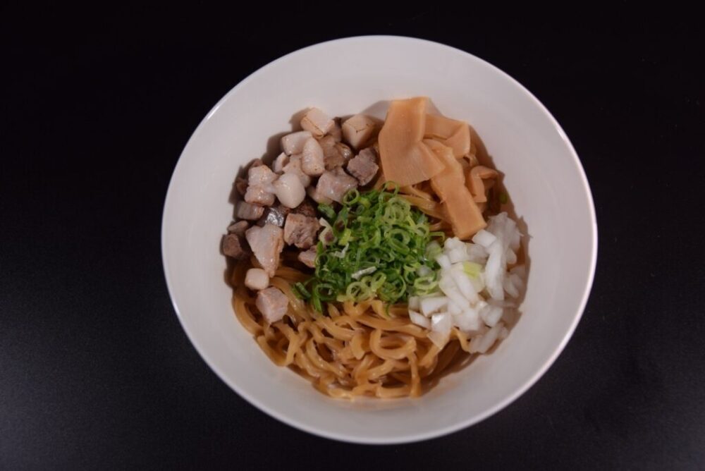 販売するメニューは、「すいたぶるまぜそば(醤油)」で、トッピングには地元・淡路島産の玉ねぎをふんだんに使用しております。また傷やサイズ規格外で販売することができなくなった煮干しや玉ねぎを使用し、食品ロス削減にも取り組んでおります。