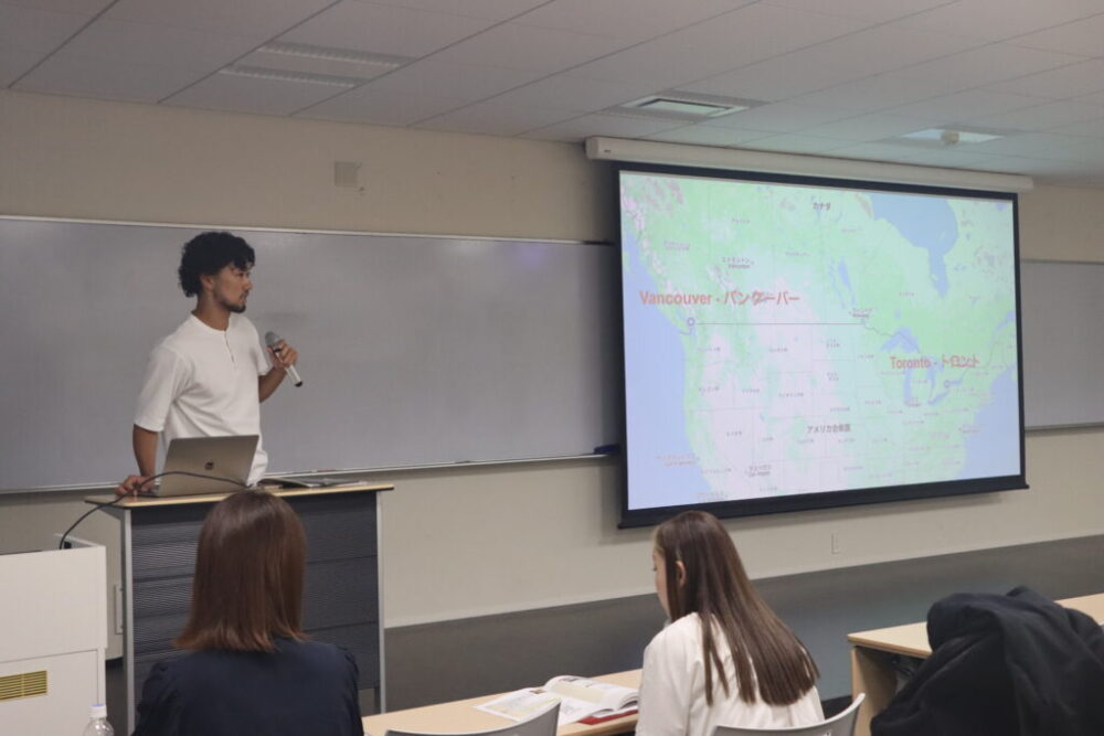 説明会は、10月16日(金)と10月20日(月)の2日間に分けて行われ、約50名の学生が熱心に説明に耳を傾けていました。説明会では、アメリカ、ニュージーランド、フィリピン、オーストラリア、マレーシアなど14カ国それぞれの国の特色、文化、気候などの紹介のほか、留学先での授業の様子をはじめ、放課後アクティビティの内容についても説明を実施しました。