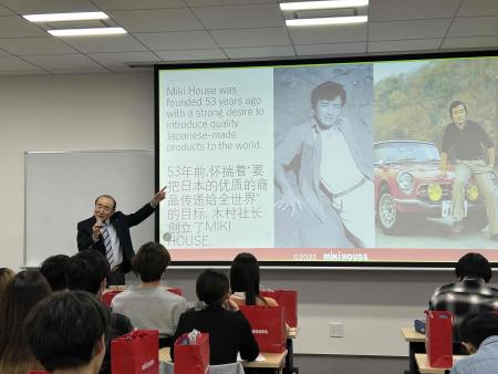 ミキハウスの創業にまつわるエピソードから成長プロセスまでご説明頂きました。そのうえで,made in Japanの凄さとともに,最高のデザインで最高のクオリティの商品を造るという企業文化の形成の話を通じて,学生時代に自分の未来をデザイン(設計)すべきこと,そして誇りの持てる生き方をすべきことを教えて頂きました。