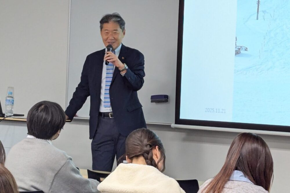 11月21日(金)、政治経済学部の2年生を対象に、吹田市長の後藤圭二氏による特別講義が行われました。