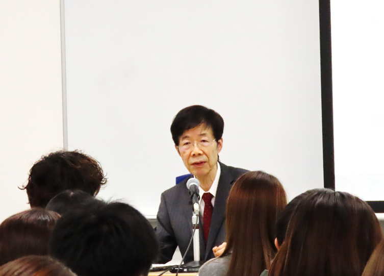 <政治経済学部>川崎重工業・顧問で新産業創造研究機構・理事長の牧村実先生を招いて実学講座を開催しました。