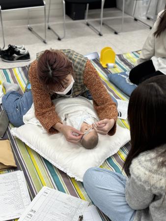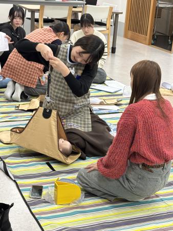 育児体験がない学生たちですが、短時間の演習で経験したことを少しでも今後の実習などに活かせることができればと思います。
