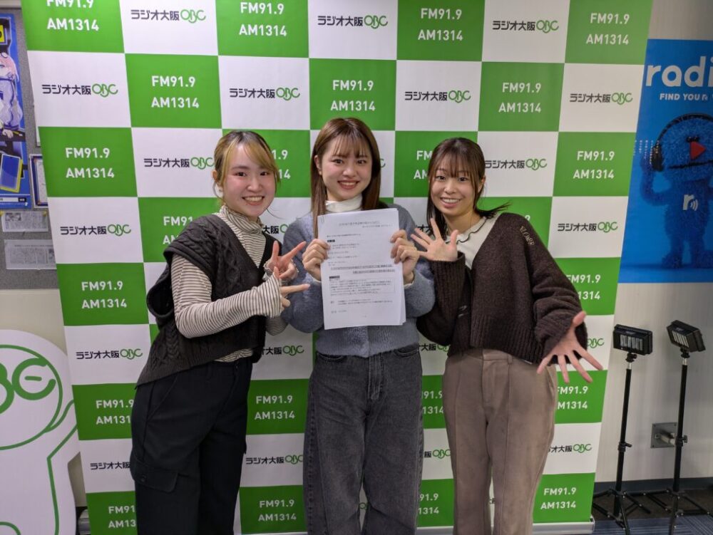 本学社会学部の佐々木ゼミに所属する学生3人が、2月4日(水)朝にラジオ大阪で放送された「藤川貴央のちょうどえぇラジオ」に出演しました。