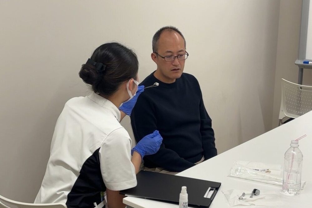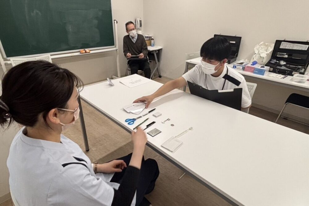 OSCEでは、模擬患者役の教員に対して各種検査を実施します。そのため、障害に対する知識の整理、検査手技の習得、患者への配慮など多面的な技能の練習が必要となります。2年生もOSCEに向けて、連日、ゼミごとに対策を行い、今回の試験に臨みました。初めてのOSCEで、自身の課題や必要な勉強の整理ができたのではないかと思います。