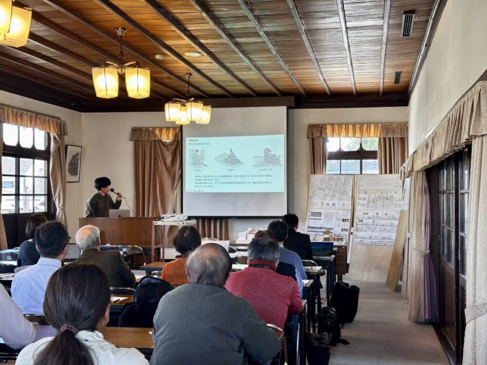3月24日(火)、本学理工学部建築学専攻卒業生の横内稀人さん(2026年3月卒業、東京芸術大学大学院 美術研究科)は、NPO法人「今井まちなみ再生ネットワーク」が主催する「2025年度 今井町合同研究報告会」(奈良県橿原市)において、卒業研究の発表を行いました。