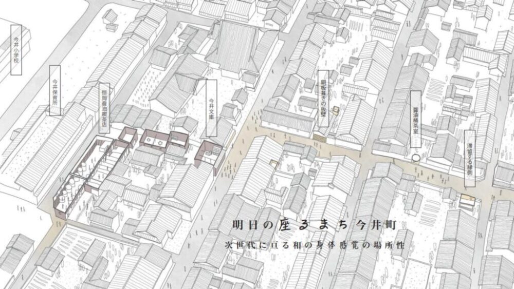 当日は、京都大学・関西大学・鳥取大学をはじめとする研究者に加え、NPO法人や今井町並保存整備事務所の関係者、地域住民など多くの方々が参加しました。本学の建築学専攻卒業生の横内稀人さんは、ゼミ指導教員の包慕萍教授の指導のもと、卒業設計の対象を今井町の明治から続く恒岡醤油蔵の空き家に設定。デザインコンセプトを「和の身体感覚の継承」と定め、地域住民がもつ和の身体感覚を若い世代に継承できるようなリノベーション・デザインを行ってきました。