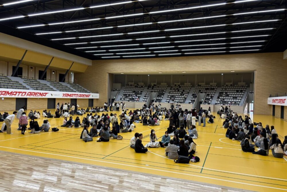 保健医療学部看護学科では、4月6日(月)に毎年恒例の「新入生歓迎会」を大和アリー ナで開催しました。