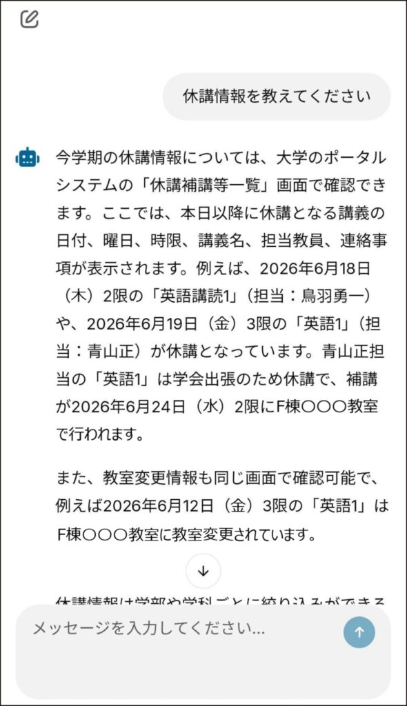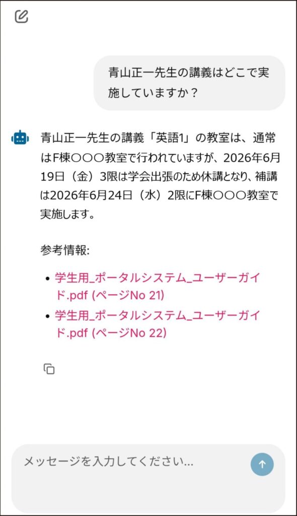 大和大学は、常に新たな取り組みを積極的に推進し、大学価値の向上を目指しています。2024年4月には、全国に先駆けてデジタル学生証を導入。独自アプリによる出席管理や、QRコードを用いた図書館入館・貸出システムを採用するなど、DX化を加速させています。今回こうした取り組みをさらに発展させるため、新たに大学ポータルシステム上で動作するAIチャットボットサービスの導入に向け、実証実験を開始することとなりました。
