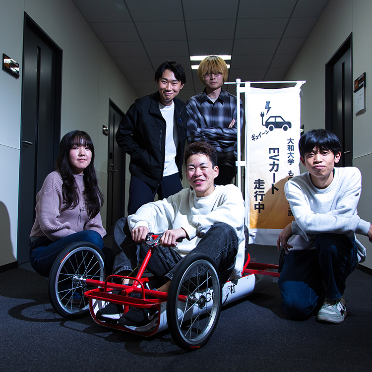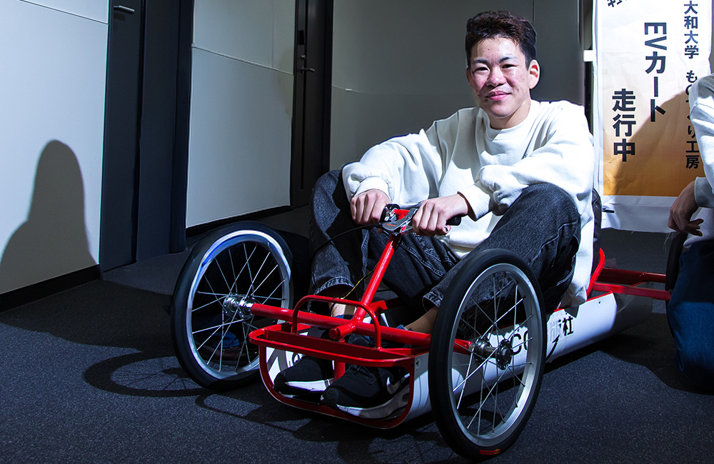 学生たちの「やりたい」という声をしっかり吸い上げてくれ、実現できる環境を整えてくれるところです。高額なEVカートのキットを用意してくれたときには、みんなして驚きました。また、先生たちとの距離がとても近く、手厚いサポートが受けられるのも魅力。相談すれば、いつも親身になって話を聞いてくれて、具体的なアドバイスまでしっかりもらえる環境です。大和大学でなら、自分たちの理想を叶えることができ、一生モノの経験を積めるでしょう。
