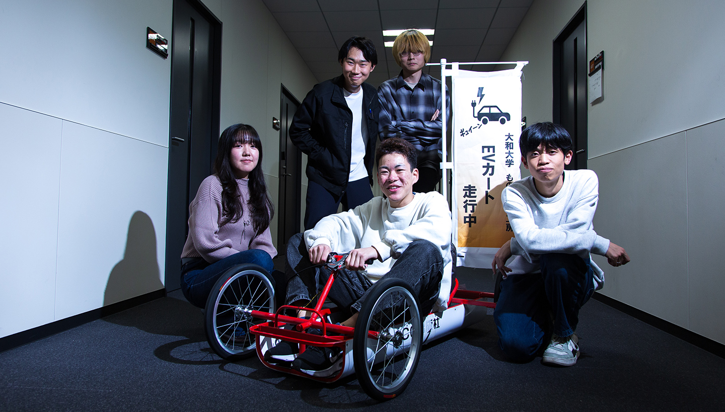 学生たちの「やりたい」という声をしっかり吸い上げてくれ、実現できる環境を整えてくれるところです。高額なEVカートのキットを用意してくれたときには、みんなして驚きました。また、先生たちとの距離がとても近く、手厚いサポートが受けられるのも魅力。相談すれば、いつも親身になって話を聞いてくれて、具体的なアドバイスまでしっかりもらえる環境です。大和大学でなら、自分たちの理想を叶えることができ、一生モノの経験を積めるでしょう。