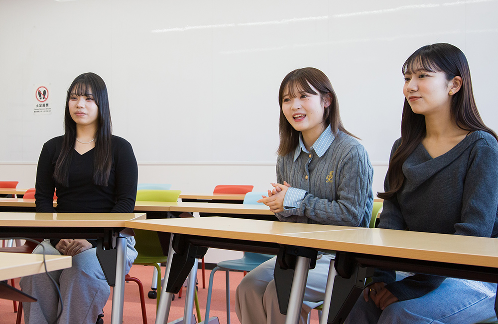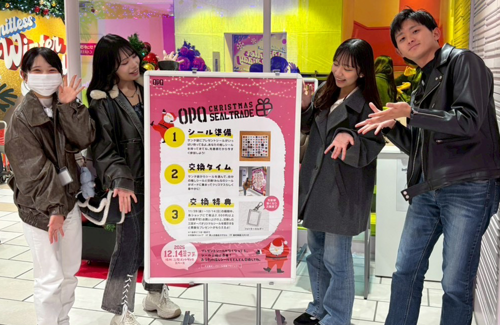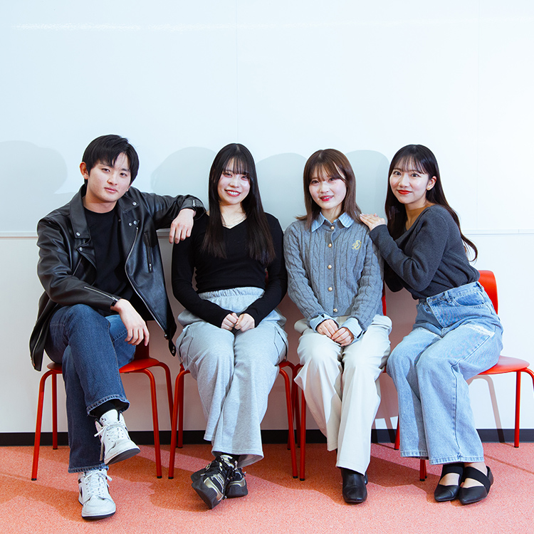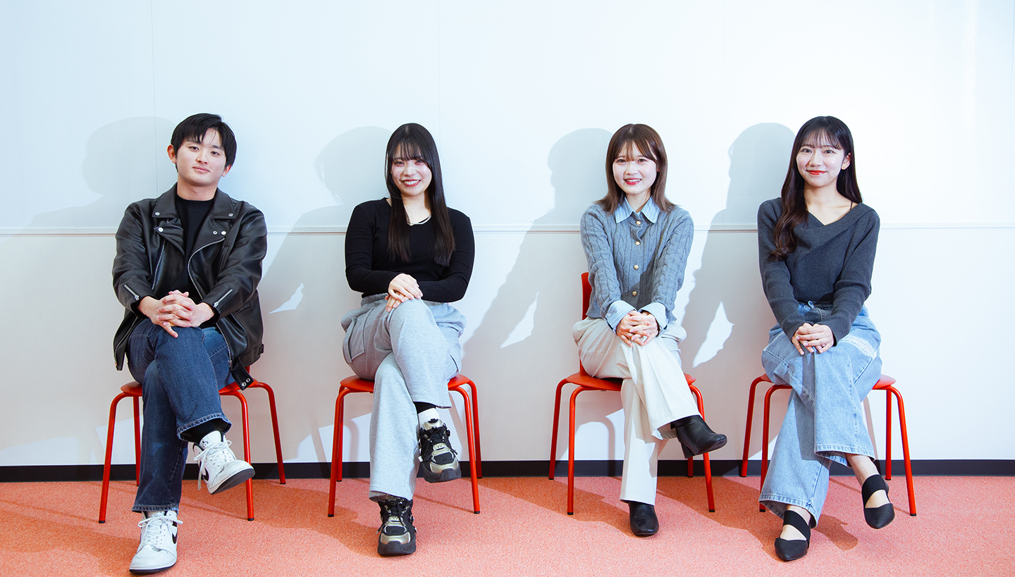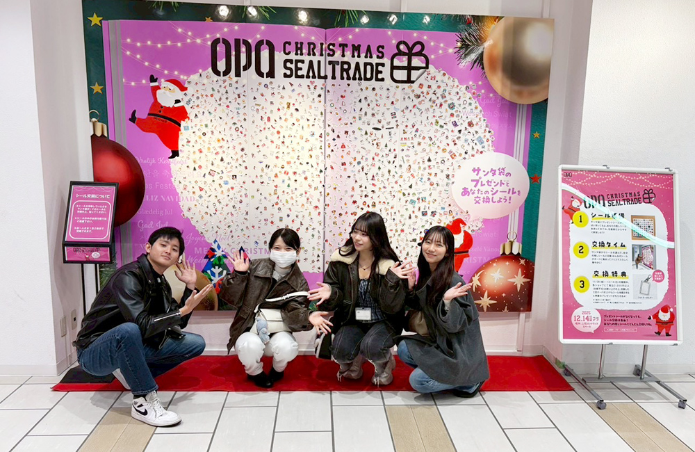 政治・政策学科の浜田ゼミでは、販促プロモーションや商品企画をはじめ、実際のビジネスに携われるチャンスが用意されています。今回は、人気ファッションビル・三宮オーパと学生たちがコラボレーションした「三宮オーパシール交換プロジェクト」を紹介。「Z世代に刺さる販促施策」をテーマに、企画の立案から実施までの一連の過程を経験して感じたことや学びを、プロジェクトに参加した4名に語り合ってもらいました。
