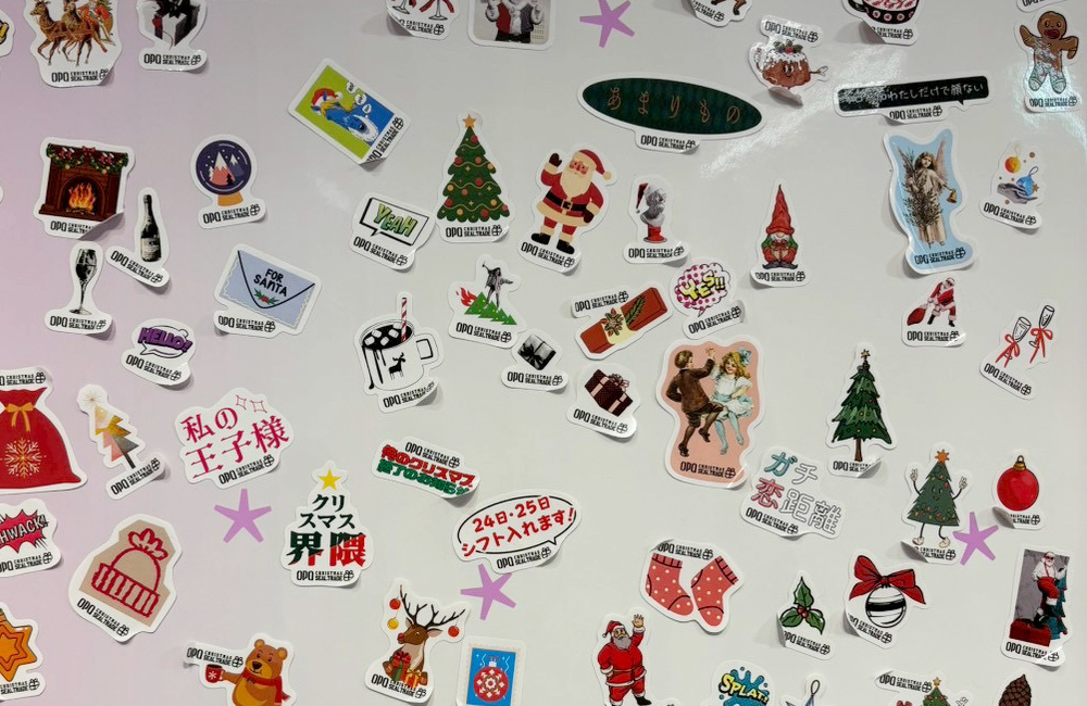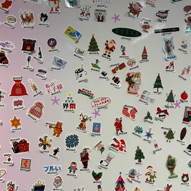クリスマスにちなんだモチーフを中心に、バラエティ豊かなシールがズラリ。「クリぼっち」「メリーサミシマス」など、Z世代の間で流行っているワードも取り入れられており、遊び心あふれるデザインがとても目を引きました!