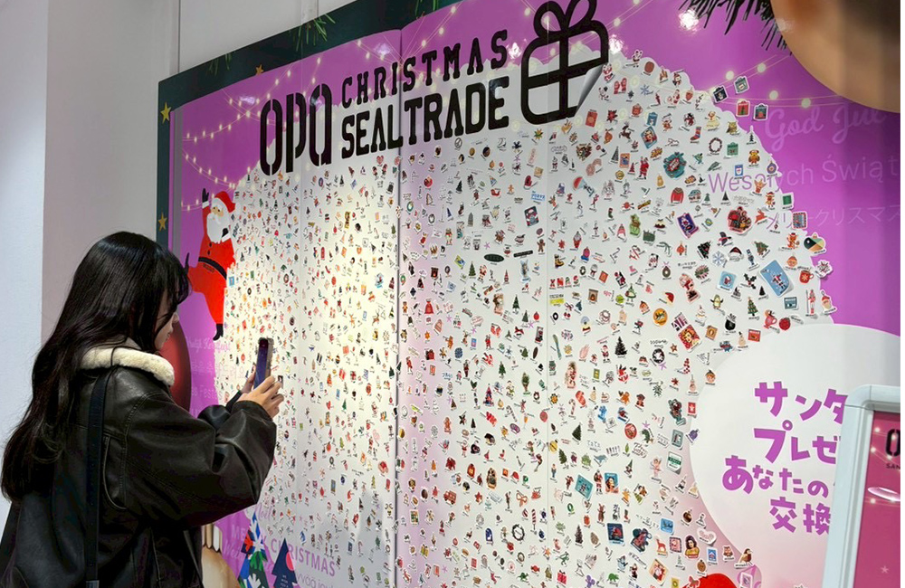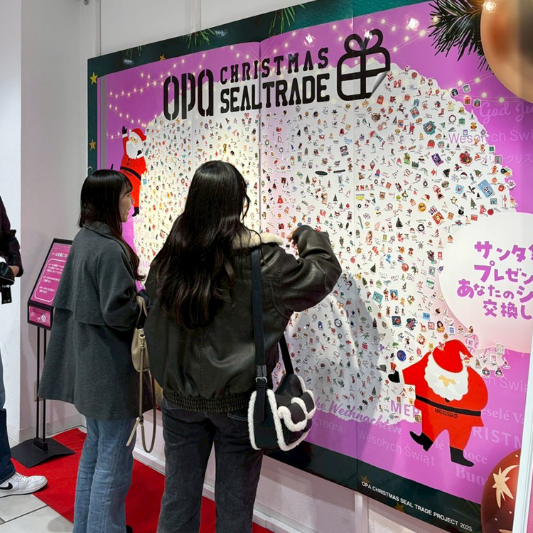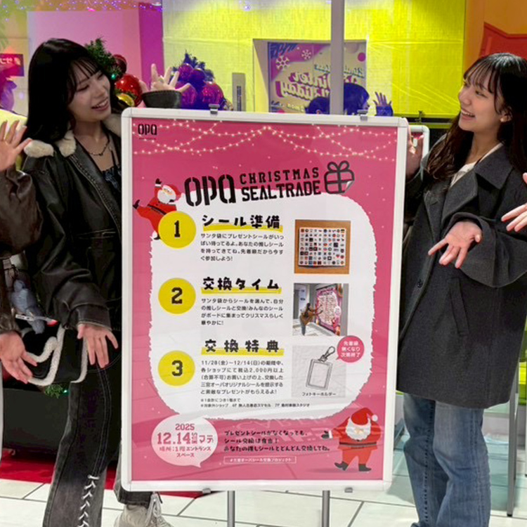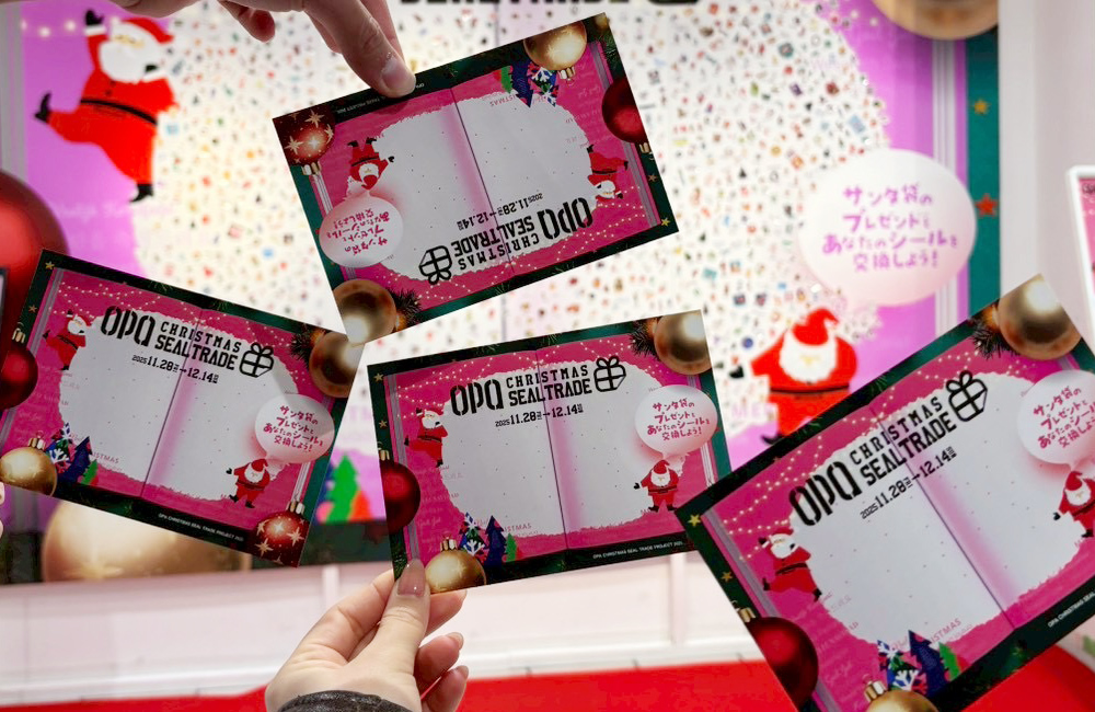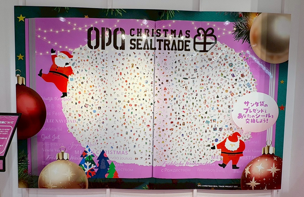 「三宮オーパシール交換プロジェクト」は、参加型のプロモーション企画です。自分の推しのシールを持参し、三宮オーパ1階エントランススペースに設置されたサンタ袋のボードに貼られたシールと交換するというもの。商品を購入するだけでは得られない、楽しさやワクワク感を提供できる点が特徴です。