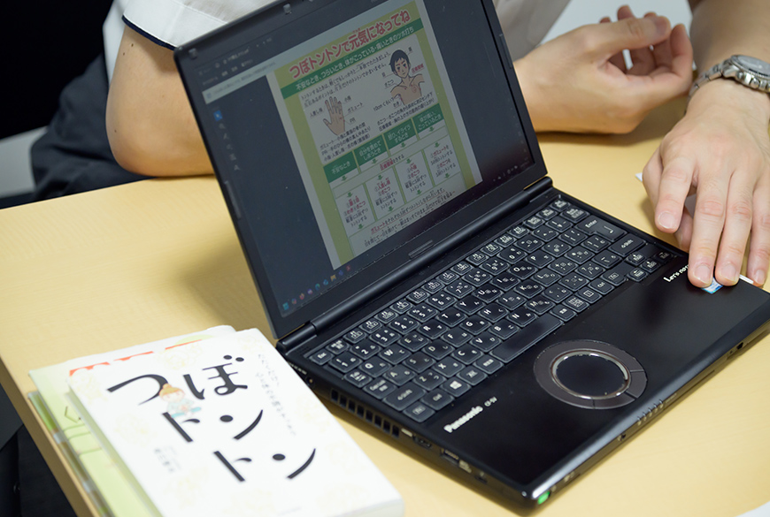 知覚心理学の研究と合わせて、臨床心理学に関連した心理療法の研究にも携わっている小原准教授。そのひとつが、「思考場療法」の効果研究です。『思考場療法』とは、特定のツボを指で軽くタッピング(刺激)することで、心の不安やトラウマ、恐怖症、ストレス反応などの心理的苦痛を和らげようとする療法のことです。