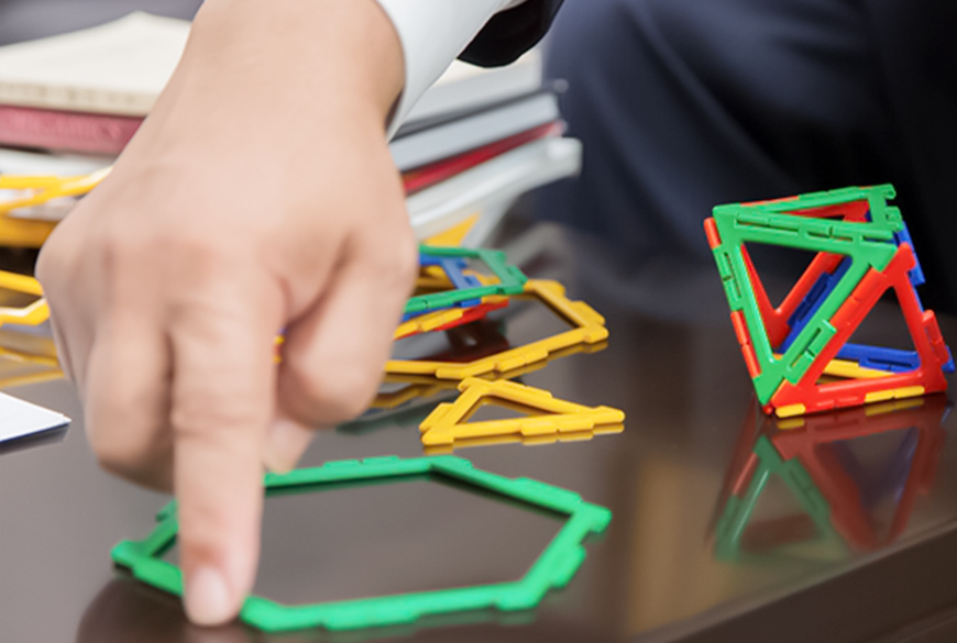 牧下教授は、高校数学における「探究型学習」の研究に携わり、ICTを活用した学びの可視化や支援ツールの開発に取り組んでいます。大切にしているのは、生徒が自ら問いを立て、試行錯誤を通して数学的思考を深めていくこと。技術の導入そのものよりも、「学びの設計」こそが重要だと考えています。さらに、折り紙やタイルといった身近な素材を使った体験型学習にも注目。数学をただ「解く」だけでなく、「探究し、伝える学び」へと広げる教育モデルの構築を目指しています。