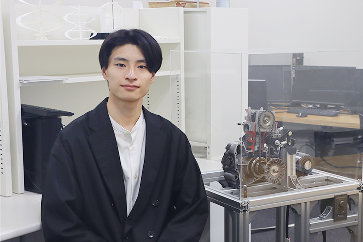 近年AIなどの新技術が開発されており、幅広い知識が求められます。大和大学の専攻融合型カリキュラムは、機械分野だけではなく幅広い知識を身につけることができます。異なる専攻の学生と共通の課題に取り組む中で、それぞれの専攻の学生の視点の違いから、新たな気付きや発見がありました。大和大学は、少人数制で教授とも距離が近く、自分がやりたいと思った研究をどんどんチャレンジさせてくれる環境があります。就職サポートも手厚く、夢だった自動車企業への就職が決まりました。大学で学んだ幅広い知識を活かして、自動車で皆さんの日々の暮らしがより良いものになるように貢献したいです。
